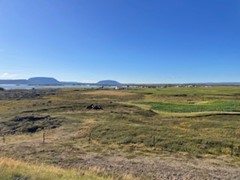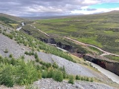 玄武岩峡谷 (Stuðlagil Canyon):临近峡谷,山青青,水碧碧,车子在山路上辗转,融和在青山绿水间。停车场很大,沿着数百台阶下去上来,即无法下到谷底,也无法到对面去走步道,反复看来看去也没搞明白怎么到对面去。对面的步道上游客不少,远处似有个不大的停车场。