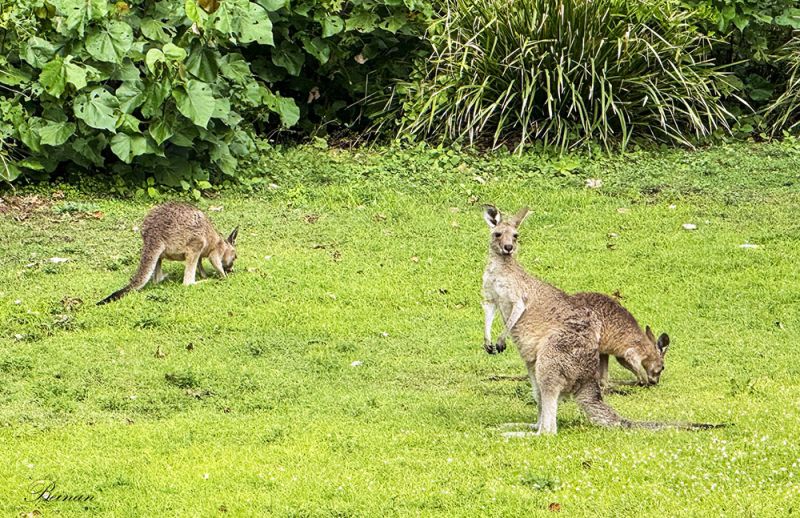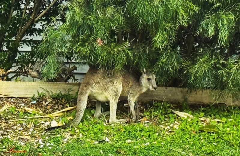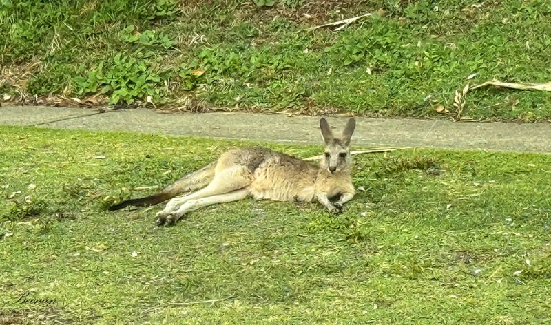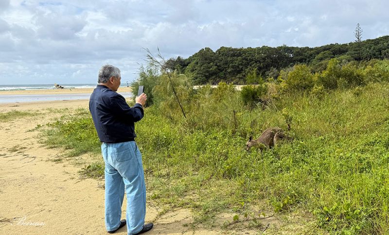 倒是海边草丛中的这只袋鼠让我们更感兴趣。它可能也是趁着人少,才毫无忌惮地到这里享受美食吧。