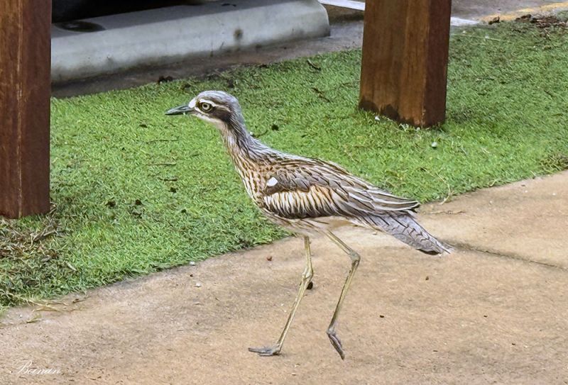 在停车场附近,看到很多这种长腿鸟。导游说,这是灌丛石鹬(Bush Stone-Curlew),是澳大利亚特有的鸟类。这种鸟以地面为主,是澳洲最神秘的地面鸟之一。白天伪装,夜晚低沉叫声,给北澳和东海岸的自然景观增添了独特的“野性氛围”。
