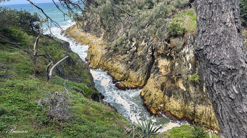 峡谷(Gorge)指的是中间这条被海浪冲刷形成的海蚀峡谷,波涛在岩缝间翻滚,非常壮观。