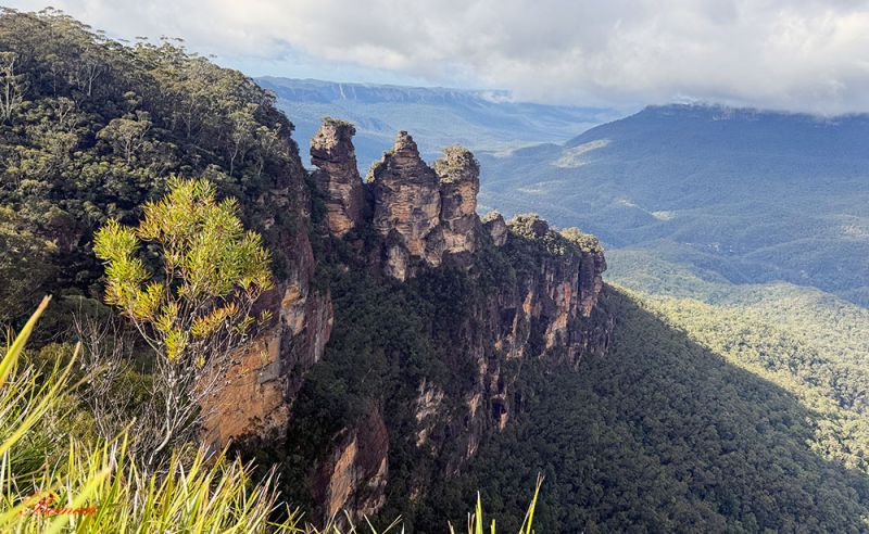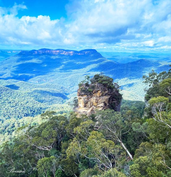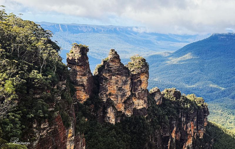 蓝山最著名的景点之一就是三姐妹峰(Three Sisters)。这三块高耸的岩石从杰米森山谷(Jamison Valley)中突起,形态如三位姐妹守护着山谷。