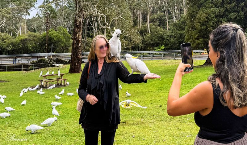 导游说,其实我是不应该带鸟食喂它们的,只是为了你们能看到这样的景观。真的是很感谢导游,让我们看到了这样壮观的硫冠凤头鹦鹉群。这是一日游最令人开心的一幕。