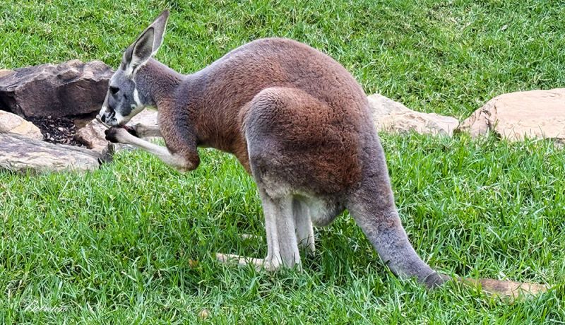 最先看到的是澳洲本土区里的袋鼠。这是我们在野外没有见过的红袋鼠(Red Kangaroo / Osphranter rufus),其特征是红褐色的皮毛和巨大的体型。