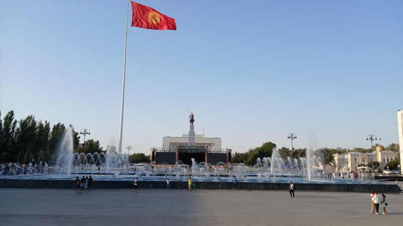 下一个景点我们去了阿拉套广场。这里是吉国最重要的政治与文化广场,相当于北京的天安门广场。广场宏伟开阔,国家国旗旗杆高高矗立,每天举行的卫兵换岗仪式是游客必看的项目。广场一侧是巨大的玛纳斯勇士雕像,另一侧则是现代化的国家历史博物馆,其建筑本身就是一个地标。