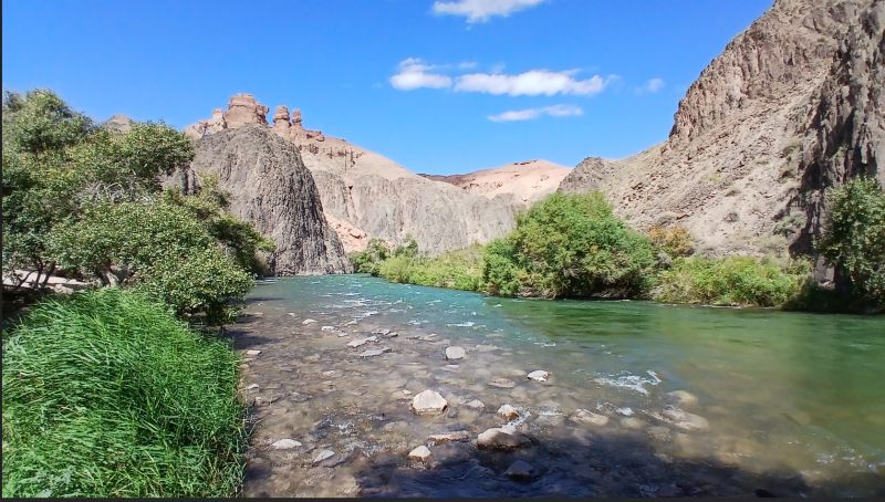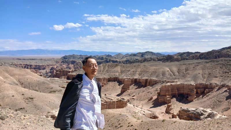 那天早晨我们离开吉尔吉斯坦,进入哈国,出关入关顺利,而后来到查伦峡谷(Charyn Canyon)。它位于阿拉木图地区东部约200公里处,是查伦国家自然公园的核心景点。该峡谷沿查伦河延伸约154公里,深度大约150-300米,由风蚀和水流历经1200万年雕琢而成,岩层呈红色、橙色和粉色,宛如童话城堡。最著名的“城堡谷”(Valley of Castles)部分,奇形怪状的岩石 formations 酷似古堡、动物,鬼斧神工令人叹为观止,常被誉为“哈萨克斯坦的大峡谷”,虽规模小于美国大峡谷,但景观也很壮丽,甚至更古老。我感觉这里有些像张掖附近的冰沟丹霞。峡谷底部有冰河时代遗存的索格底亚灰树林,生态多样,存有众多珍稀动植物。我们乘电瓶车到达景区最深处,这里有查伦河流过,周围尽是山峰,不少上面怪石嶙峋,形态诡异。此处是徒步、摄影和探险天堂,日落时色彩变化有如梦幻。而峡谷上面的景观迥然不同,也十分壮观。建议谷底和谷上都去游览。