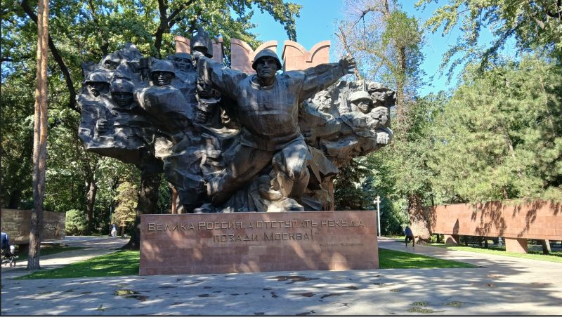 而后我们参观了潘菲洛夫28勇士公园(也称潘菲洛夫-28勇士纪念公园或28潘菲洛夫近卫军公园)。它是阿拉木图市最著名的城市公园,位于市中心东部,占地约18公顷。公园建于19世纪70年代,原为老墓地,后多次改名,1942年为纪念二战莫斯科保卫战中英勇牺牲的潘菲洛夫师28位英雄战士(大多来自阿拉木图和周边)而定现名。这些战士在1941年杜博塞科沃战役中阻击德军坦克,全部阵亡,后被追授苏联英雄称号。有报道说其实英雄为29名,其中一人在战斗中幸存。喜欢二战历史的人看到雕塑一定有共鸣。
