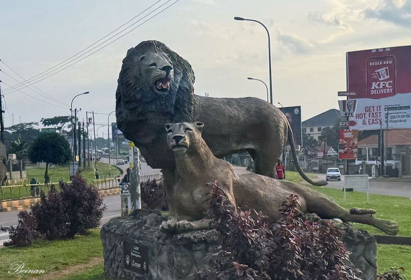 出旅馆不远,就看到了这座公狮和母狮的塑像,忽然感到心头一震。这对狮子静静站立,像是把狂野草原的呼吸带进了城市。它们提醒我——这里是非洲,狂野不是被圈养在草原深处,而是这个国家的底色。