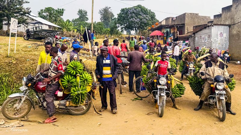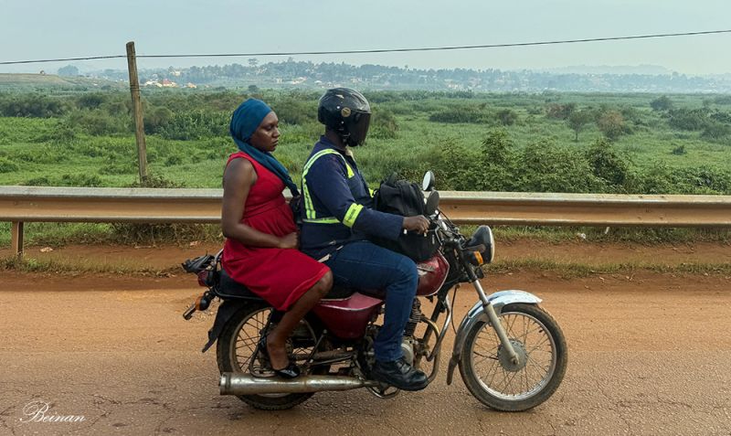 看到最多的是载人摩托车,也是出租车的一种。驾驶员大都穿着马甲,标记着不同出租公司。这种摩托出租车遍布乌干达所有城市。王大明白后来还体验了一回。