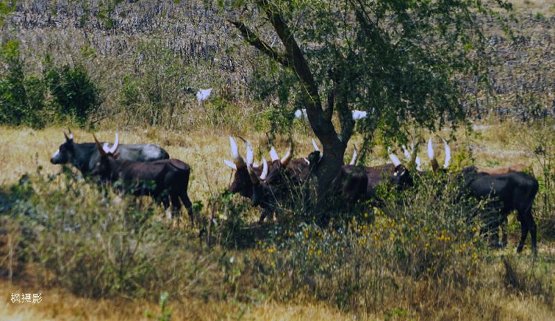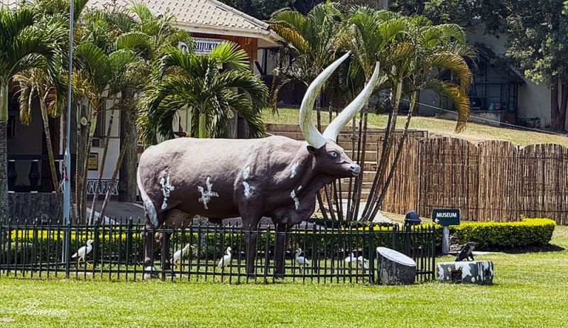 经常在路边看到这种长角牛,我们都觉得很惊奇,因为以前从来没有看过牛有这样又粗又长的角。后来查到,这种牛是安科莱牛(Ankole cows 或 Ankole-Watusi)。它们产于乌干达、卢旺达(Rwanda)、布隆迪(Burundi)等东非国家。在路上还时常看到安科莱牛的雕塑,看来它们是文化、身份与历史的象征。