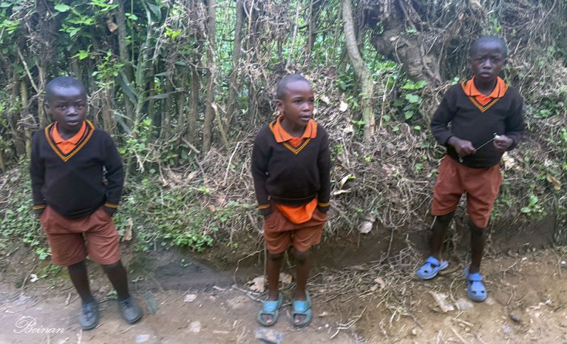 路过一个村庄,穿着校服的孩子们在路边好奇地看着我们。