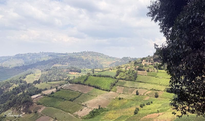 车子在布恩迪公园颠簸曲折的土路上行驶,我们得以再次观赏这里的美景。近处是一片高粱地,这是当地人用来酿酒的原料。远处是连绵的青山,彰显着一种狂野的美。
