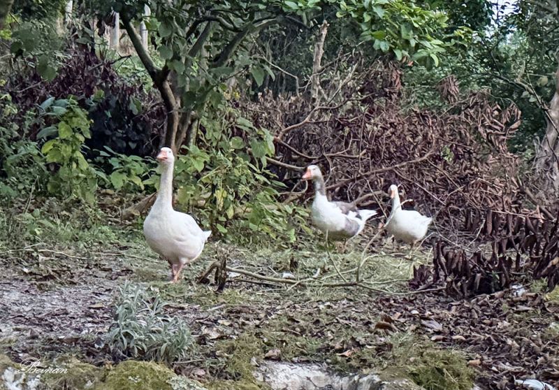 清晨,我们被嘈杂的鸟叫声唤醒。仔细听,里面有很多很好听的鸟鸣。赶紧起来出外观看。喂鸟大爷还拿了吃剩的面包打算喂鸟。但是只听到鸟叫,却看不到鸟。只看到几只摇摇摆摆走过来的大鹅。