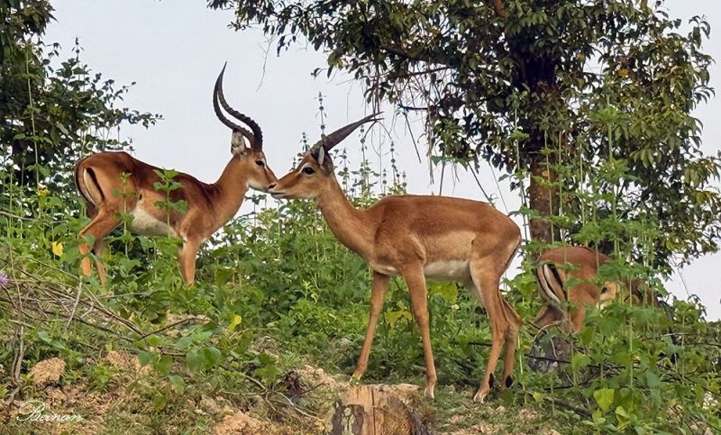 我们这个湖心岛是布尼奥尼湖中唯一可以看到乌干达野生动物的岛屿,这里有斑马、黑斑羚、水羚和科布羚。