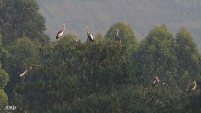 在我们乘船告别这个美丽的湖心岛旅馆时,看到了令人惊艳的一幕。一群灰冠鹤(Grey Crowned Crane)栖息在湖中的树上。