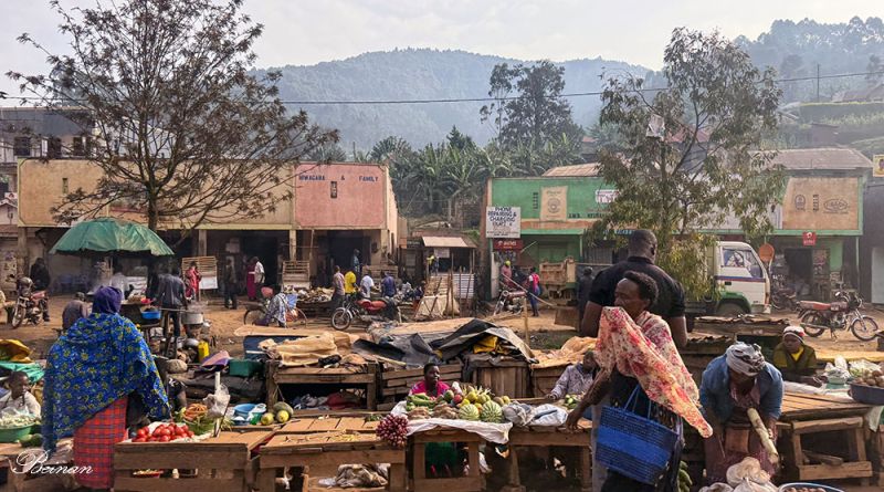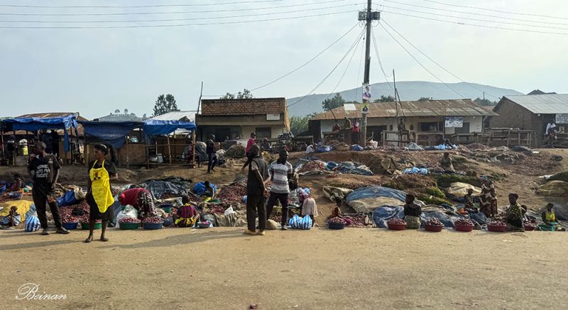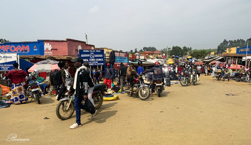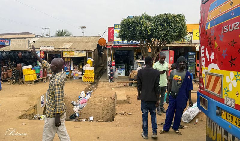 车子驶上了乌干达的国道。我们看到的是另一番景象。在国道两边有很多城镇和村庄。每路过一个城镇或村庄就会看到乱糟糟的市场,好像商业中心都建在国道两边。