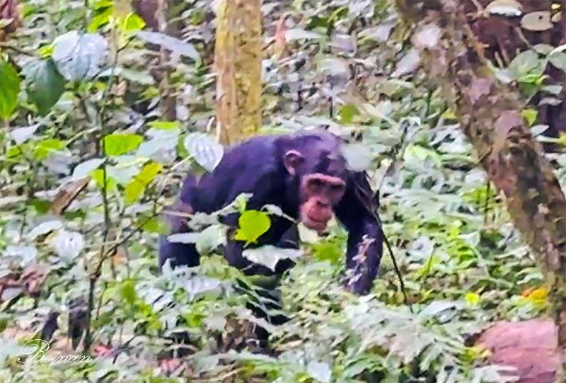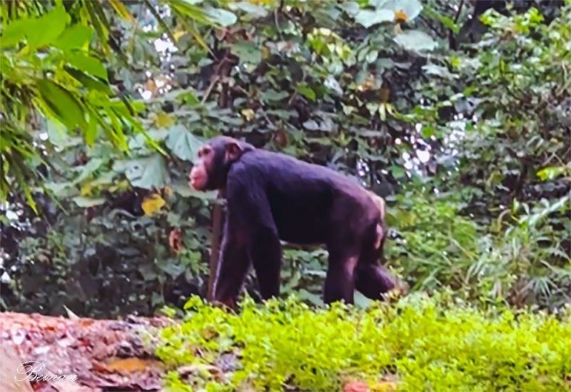 卡林祖森林保护区大约有320多只黑猩猩生活在原始森林中,其中约40–50 只已经习惯人类存在。我们看到的这些可能就是已经习惯人类的黑猩猩吧。