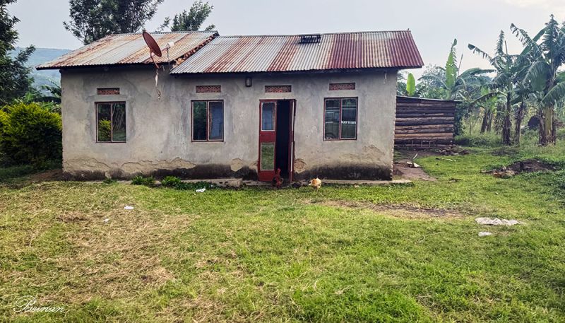 但是在回旅馆的途中,我们也看到了真实的乌干达乡村。在绿葱葱的椰林后边,是铁皮屋顶的破屋。乍一看,还以为是废弃的房子。
