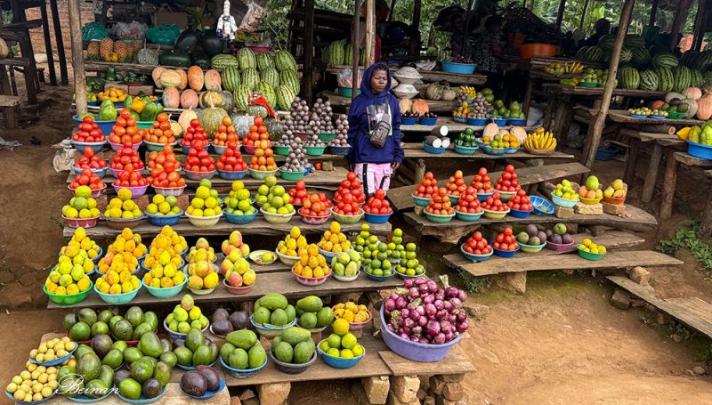 国道边也有让人感兴趣的地方。这个水果蔬菜摊吸引了我们的注意,赶紧让司机停车,掏银子为乌干达经济做贡献。