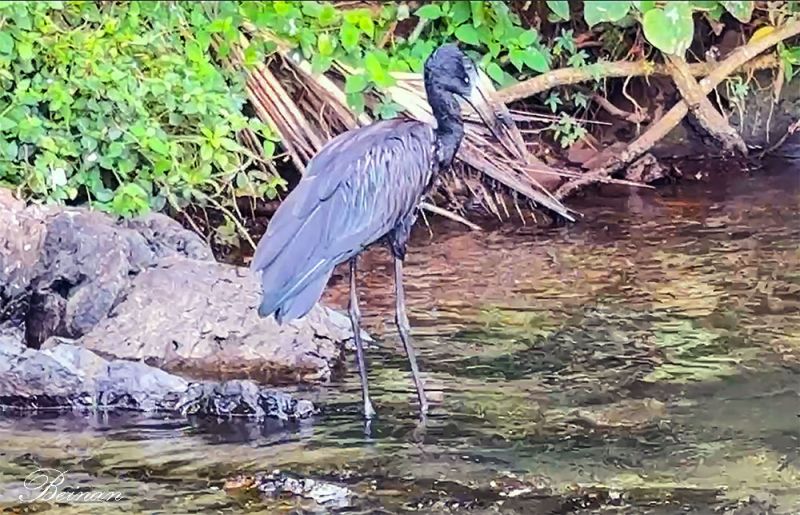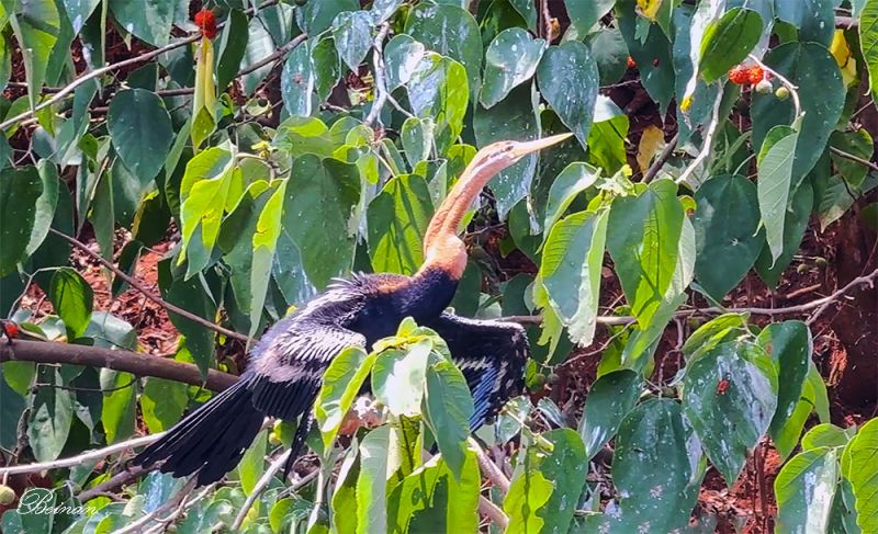 最令老太兴奋的是看到了一只非洲蛇鸟(African Darter),又叫红蛇鹈。这是一种大型水鸟,因其细长灵活的颈部酷似蛇而得名。