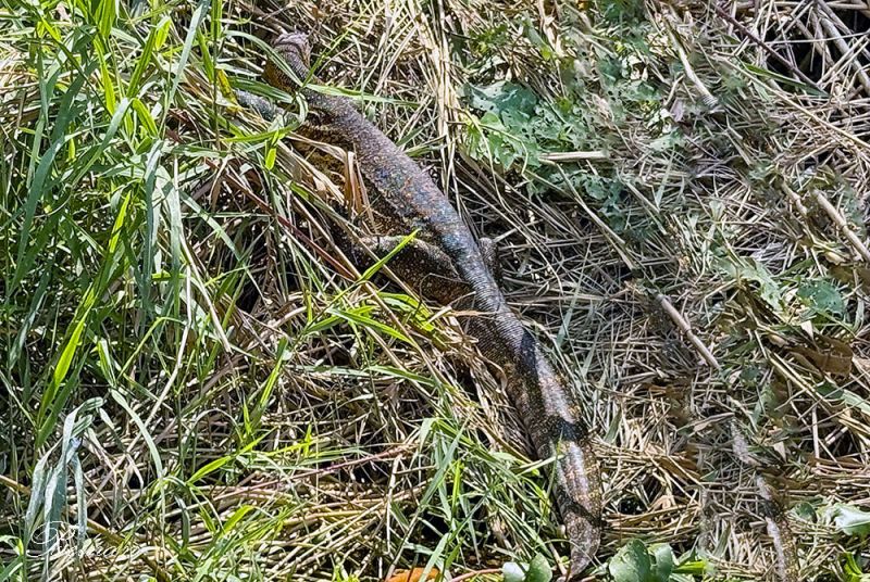 湖岸的草丛里,一条像蛇却又不是蛇的生物迅速滑过,身体带着花纹,停下时才发现那几乎被忽略的短小四肢。不知道这是什么动物。