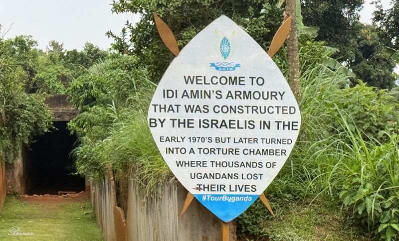 这块牌子上写着,“欢迎来到伊迪·阿明的军火库,这座军火库由以色列人在20世纪70年代初建造,后来被改造成酷刑室,成千上万的乌干达人在这里丧生。”