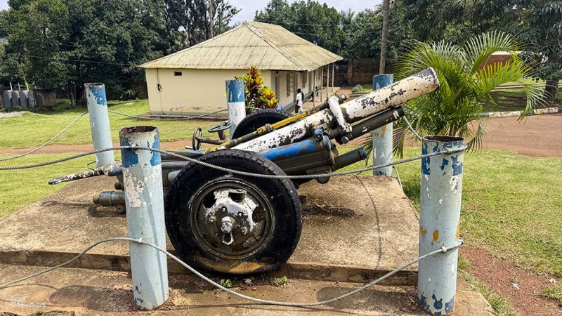 院子里,还陈列着一些乌干达的历史遗物。下面这张照片是1966年袭击事件后留下的火炮。1966年,当时的总理米尔顿·奥博特(Prime Minister Milton Obote)下令袭击宫殿,以推翻同时也是乌干达总统的卡巴卡·穆特萨二世。卡巴卡·穆特萨二世侥幸逃脱,流亡英国,1969年客死伦敦。传统王国制度随之被废。