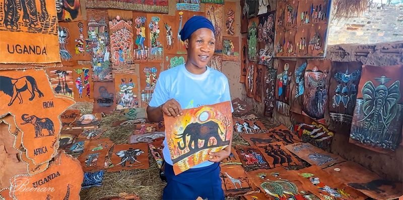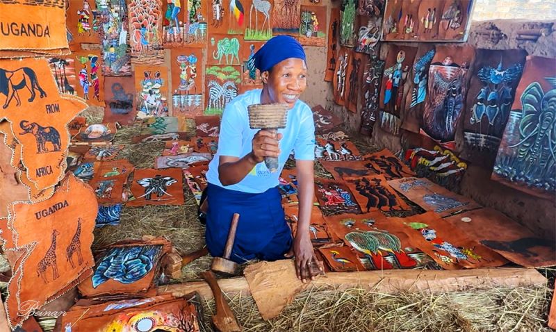 导游还提到,树皮布不仅作为画布,还可以做成衣服、T恤衫、毯子等。国王、贵族、仪式舞者等都会穿树皮布。国王下葬必须裹以树皮布。在布干达王国的传统中,它用于国王的加冕与葬礼,用于重要的生命仪式,是一种与祖先、土地和王权相连的媒介。