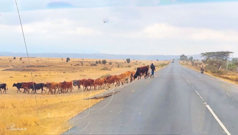 尽管道路两边是草原或农庄,还有成群的牛从公路走过,但是柏油平整、路面宽度够、标线清晰,和乌干达很多国道相比明显更现代化。