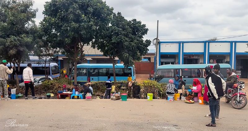 路边好像是个公共汽车站,也不像乌干达国道边那样杂乱拥挤。