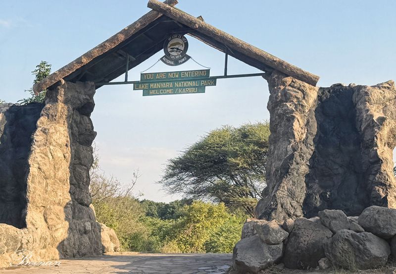 路过曼雅拉湖国家公园(Lake Manyara National Park)。这是我们行程上原定游猎的公园。导游说,现在正是湖水上涨的季节,湖面漫过湿地和草地,大象、斑马、角马都暂时搬离湖区去找干地吃草。湖边几乎空无一物,看不到什么动物。所以他才带我们改道去了塔兰吉雷国家公园。