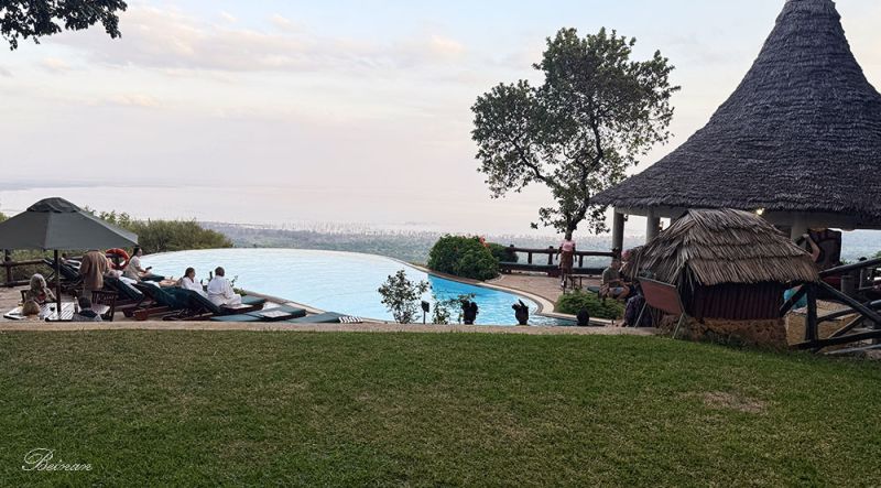 旅馆建在大裂谷西侧高地的悬崖边上,从房间阳台、餐厅露台、无边泳池一带都能俯瞰整个曼雅拉湖。