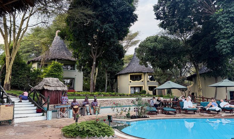 晚饭前,游泳池旁常有小型音乐会。游客们在泳池中泡去一天游猎的疲劳后,在躺椅上欣赏音乐。