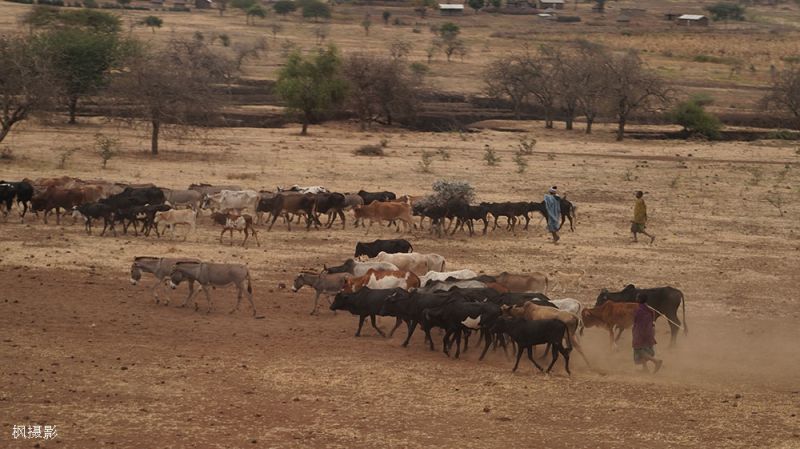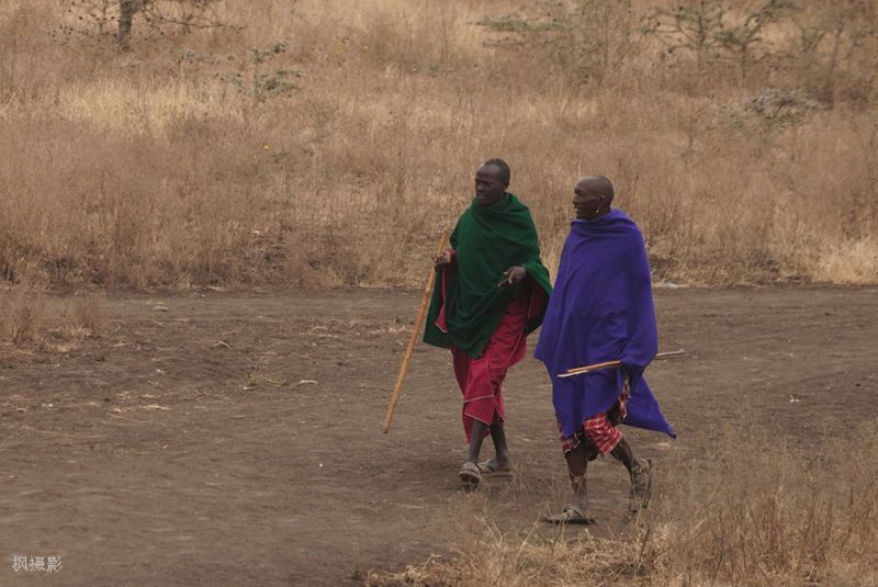 我注意到马赛人手里都拿着棍子,问导游这有什么特殊意义。导游说,放牧时用木棍可以引导牛群、驱赶偏离的小牛。马赛人总是在草丛中⾛,木棍可以帮助防蛇等⼩动物。