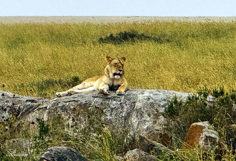 在下面的照片里,您看到了什么?里面有至少10只狮子,您信吗?在塞伦盖蒂,我们多次看到狮群。以后的游记里还会有较清晰的视频。所以看不清您也不要着急哦。