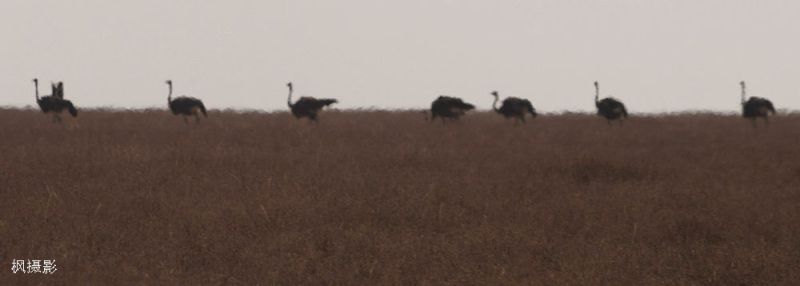 远处,一排鸵鸟的身影出现在地平线上,长长的脖子在天与地之间勾出细细的线条。