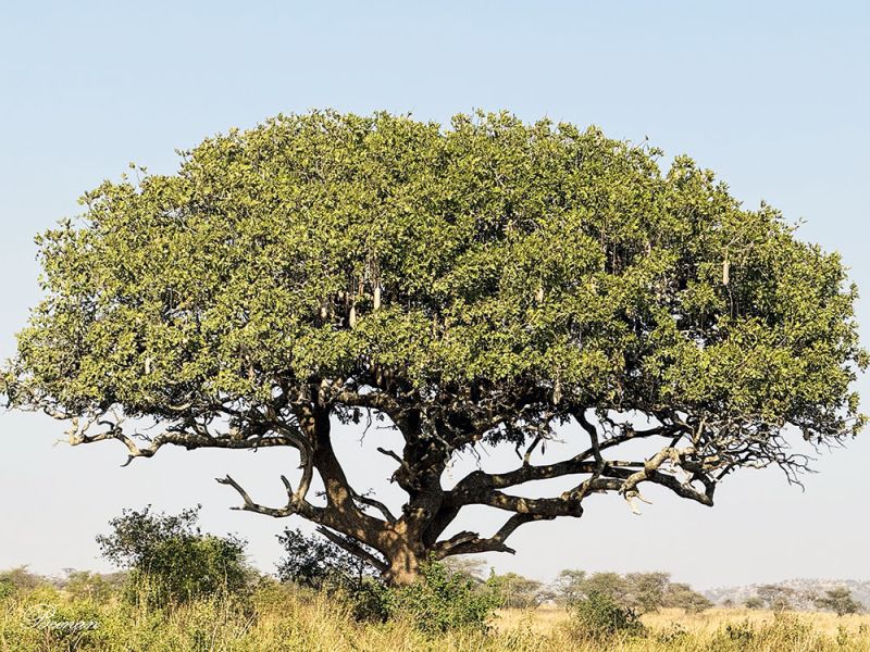 导游告诉我们,香肠树在夏季会开大而鲜红的花。它的果实很重,人类不能直接食用,因为生吃有毒,但很多动物喜爱它。