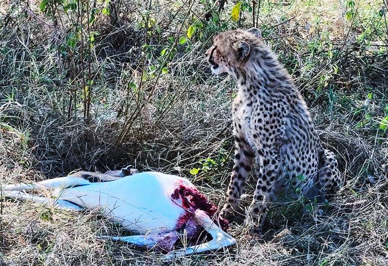 最令我们兴奋的,是看到了猎豹(Cheetah),并且是一对母子。小豹在大口啃食它们的猎物----看起来像一只前面说过的汤姆森瞪羚----画面是不是有些残忍?