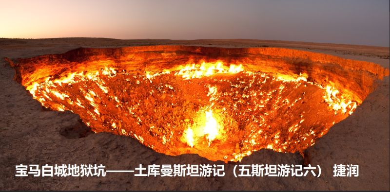 当晚我们在“地狱之门”边上的营地帐篷中过夜。满天的繁星下,我两次跑出去看那地狱之火。暗夜沙漠中,烈火坑犹如地狱之门轰然洞开。耀眼的火焰翻腾跳跃,灼浪逼人,巨坑底有如同地狱,景象惊心动魄。神奇,非常神奇。可惜但丁没有看到过如此景象,李白也没有看到过。但丁在《神曲》中只能用想象描述地狱,李白大概没有基督教的地狱概念。我既看到地狱了,又有所谓的地狱概念,却没有他俩的才华。世界充满了遗憾。当然这是玩笑。