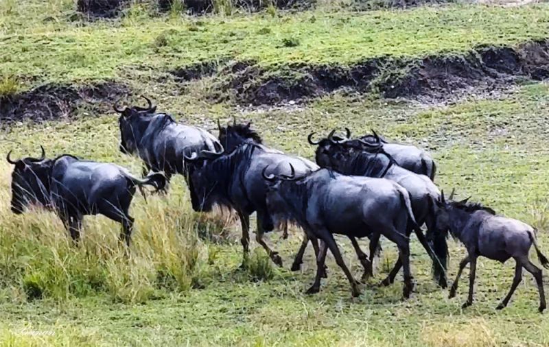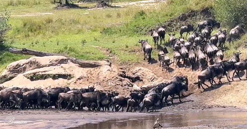 这或许是把角马渡河误认为是大迁徙;或许像我们一样,看到了许多大迁徙队伍中松散的亚群。因为“一天看到n次大迁徙”的说法也是不准确的。