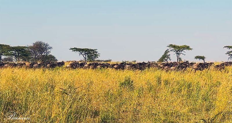 常听到从塞伦盖蒂回来的人说,我们一天看到了n次大迁徙。