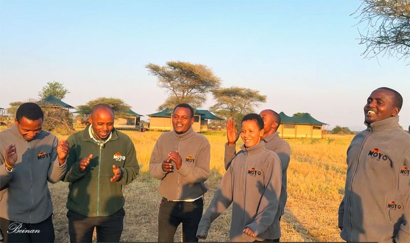 在大帐蓬里住了两晚。临别时,营地的所有工作人员都出来又唱又跳地欢送我们。