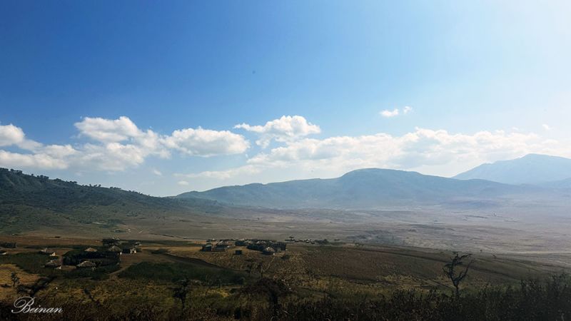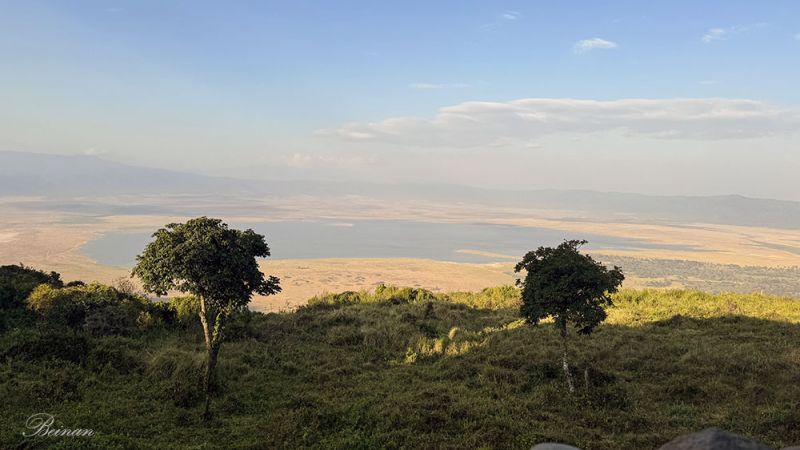 再次看到恩戈罗恩戈罗火山口,是在火山口边缘的高地上。这里海拔大约 2300米,正好在火山口的“边缘墙”上。