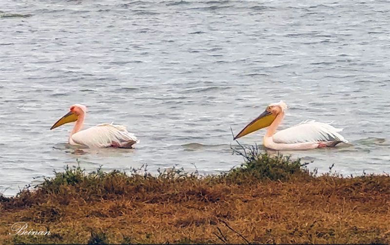 后来在另一个湖中看到一大一小两只白鹈鹕。小的羽色还带着柔和的灰褐,喙和喉囊都未完全发育,显得笨拙而憨态可掬。