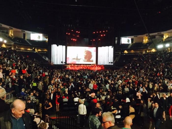 Jack 提前下班,我早已准备好晚餐。晚餐后,提前一个小时盛装出发,没想到285东和85北都堵塞得非常厉害,我们花费了整整一个多小时才到达演唱会场。大家排队进入安检门,因为是情人节,很多人都穿着红色的裙装,我也不例外。