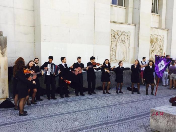 遇到了一群穿着学校制服在弹唱和演奏Fado的大学生,他们希望通过演奏来募捐学费,不少游客将钱放入他们的提琴盒子里。还有一个穿着长袍的大学生,在卖一种有小玩偶的铅笔,一只3欧元,2支5欧元,也说是募捐学费。