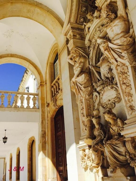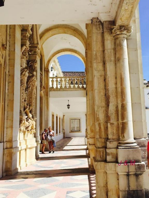 走进大门,仿佛进入到古代的欧洲大学,科英布拉大学的主建筑,是一组座北朝南凹字形的楼群,很符合风水的要求。建筑群华丽严谨和庄重,宽大的Paco das Escola大广场中央,有一座1950年建造的若昂三世雕像,他默默地注视着曾付出心血的大学。人们感恩他为科英布拉大学作出至关重要的贡献。
