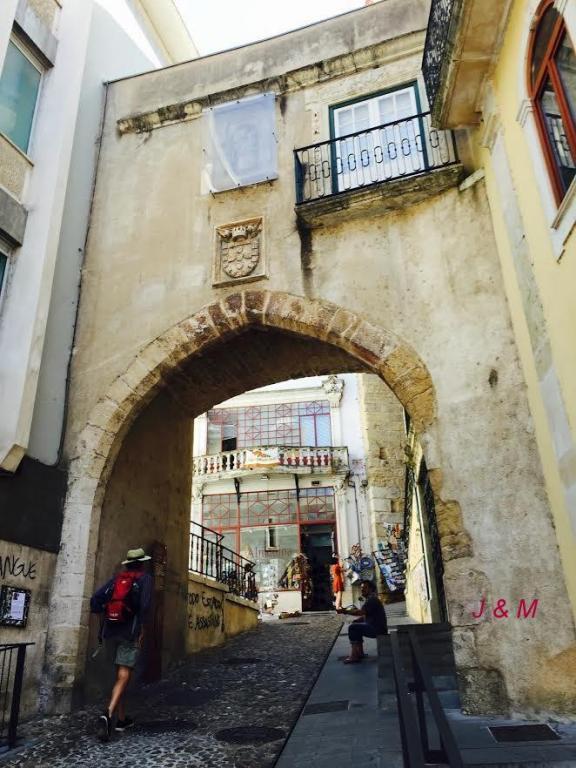 不一会,走到了科英布拉古城的一座城门Porta de Barbacã和塔楼Torre da Almedina下。阿尔梅迪纳拱门是旧城墙的一部分,穿过拱门,就来到了新市区。繁华的街道,熙熙攘攘的人群,有一种从古代穿越到现代的感觉。