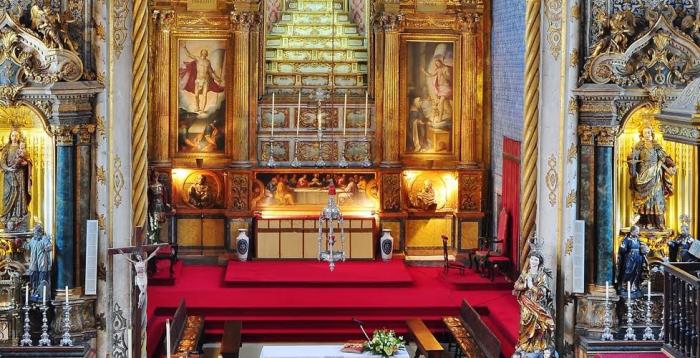 科英布拉大学现存最古老的圣米盖尔礼拜堂(Capela de São Miguel )里,是18世纪的设计风格,装饰繁复的精美绘画,华丽的祭坛,里面还有一台颇为壮观巴洛克风格的管风琴。
