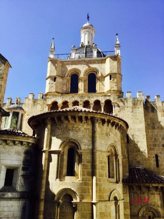 从大学里出来,我们沿着鹅卵石铺成的小路往山下走。老教堂(Se Velha)始建于1139年,1162年完工,高耸的钟塔圆顶和旁边的圆柱形建筑非常独特,似城堡一般。